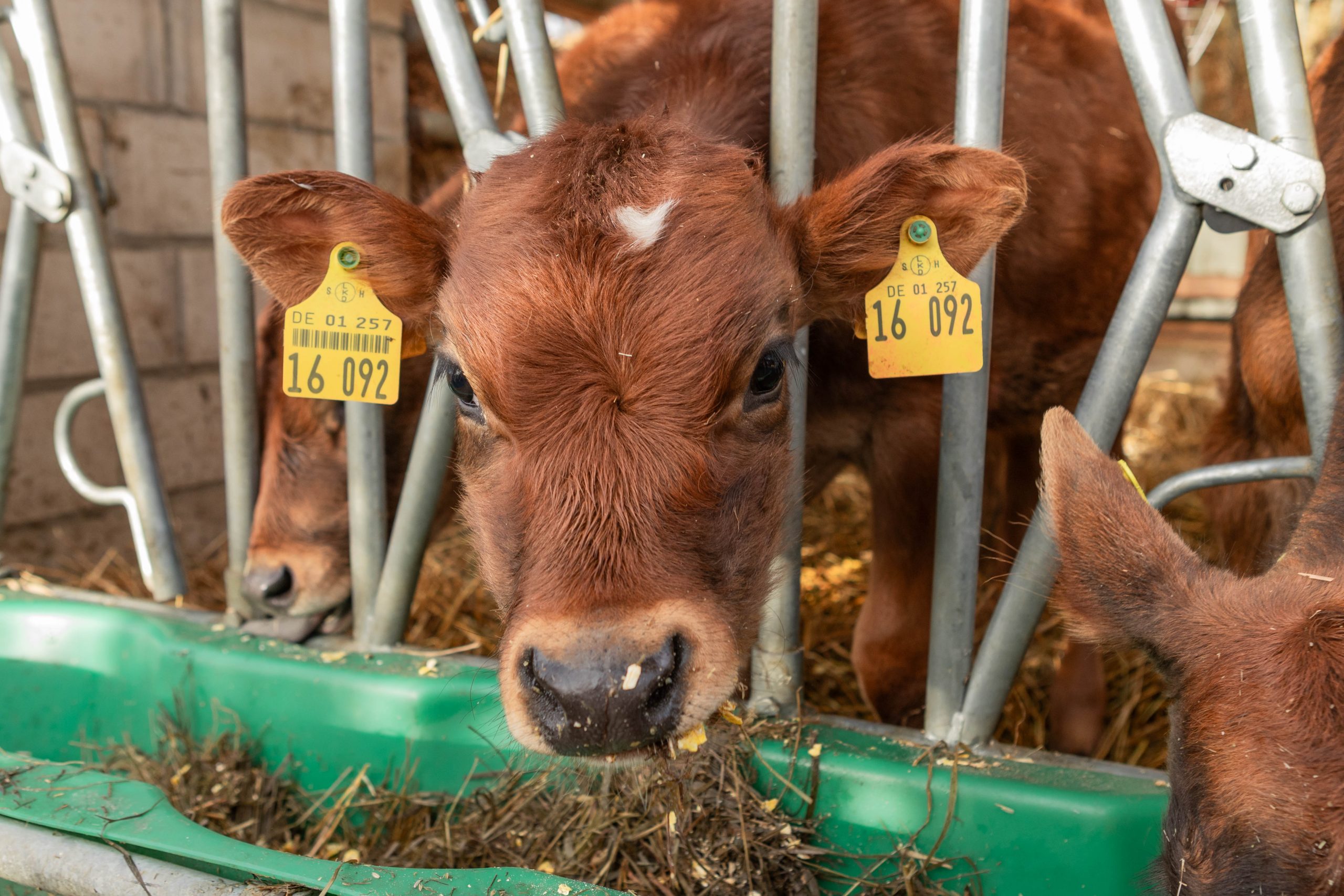 Bei uns stehen Kälber nicht in Plastik-Iglos. Sie ziehen im Alter von 2–4 Monaten ein und leben von Anfang an gemeinsam – maximal zu viert in einer Hütte. Dort fressen, spielen und wachsen sie zusammen auf. Schon zu Beginn gibt es ein besonderes Ritual: Jeder Bulle bekommt einen Namen. Denn für uns ist er keine Nummer, sondern ein Lebewesen, für das wir Verantwortung übernehmen.